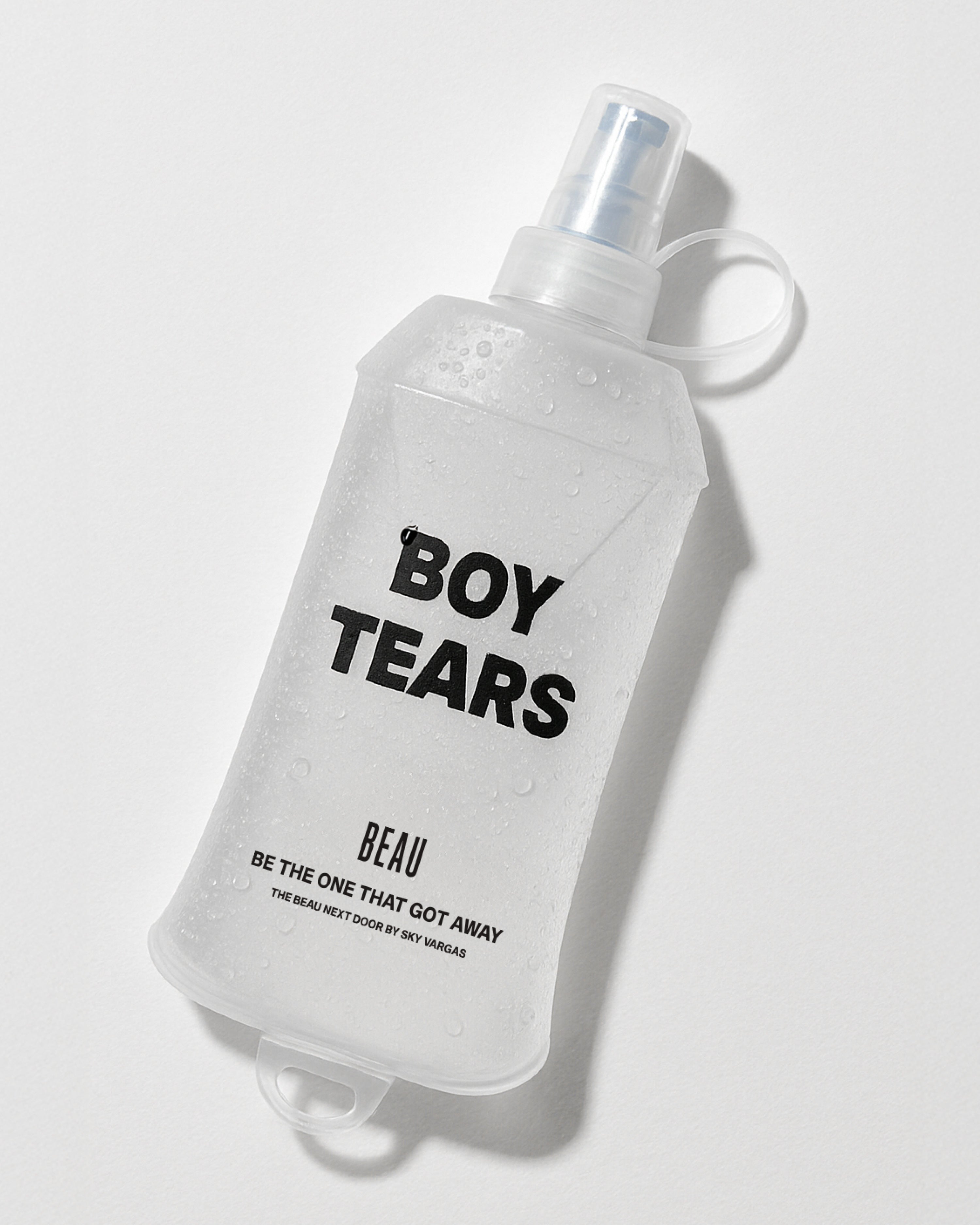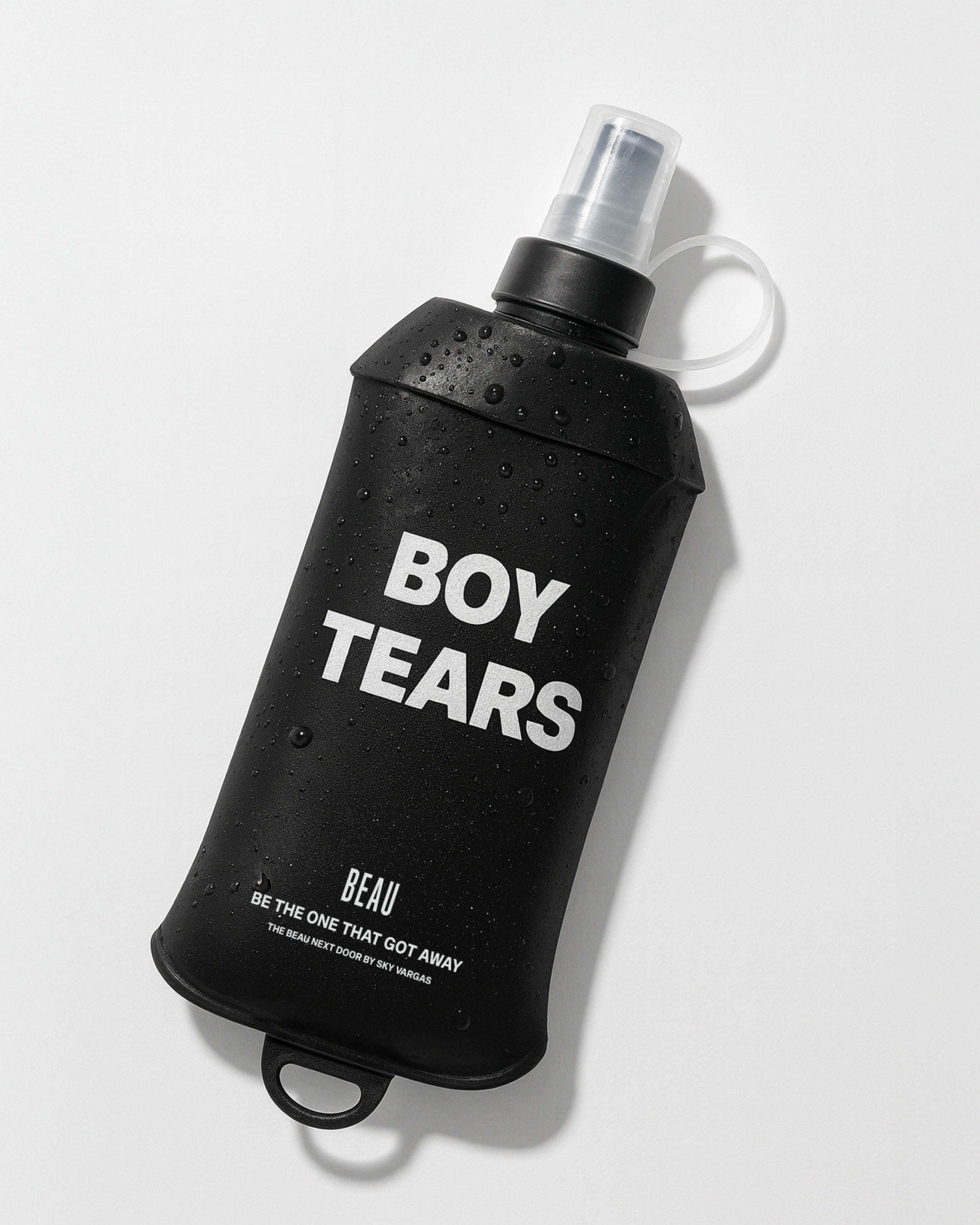 Stay hydrated with our exclusive Boy Tears water pouch, made from recycled material. Has a bite activated nozzle and a loop base for easy travel use.