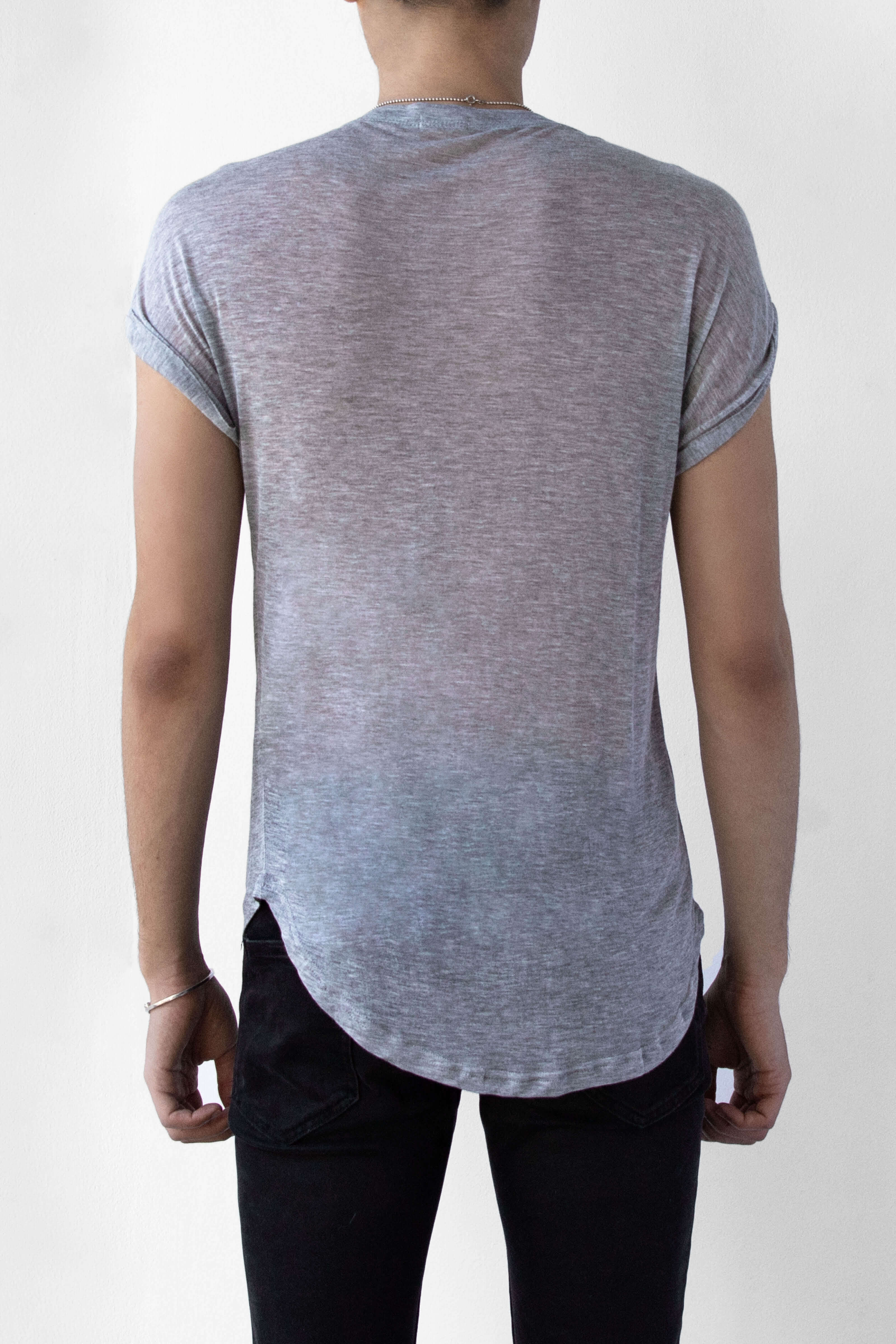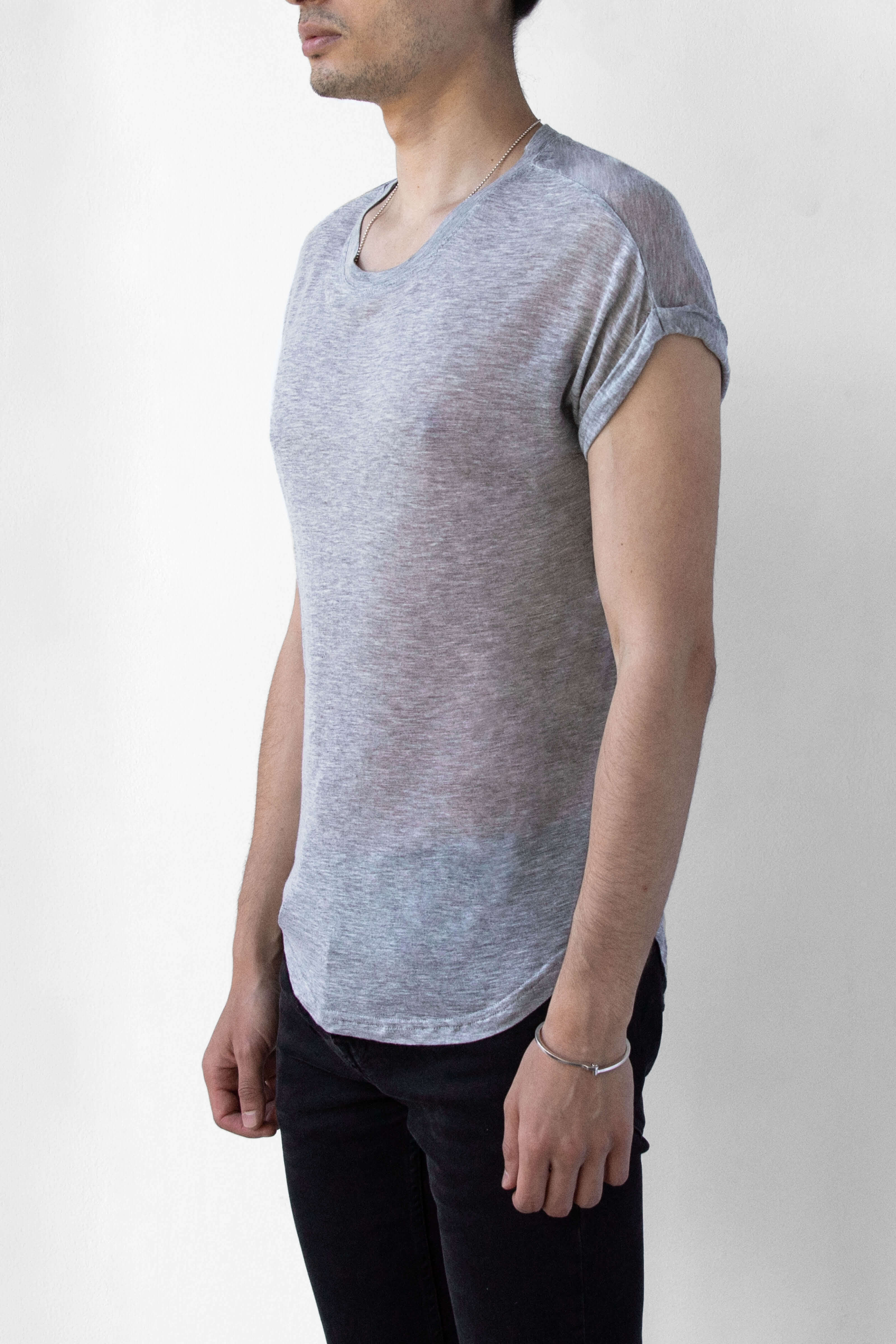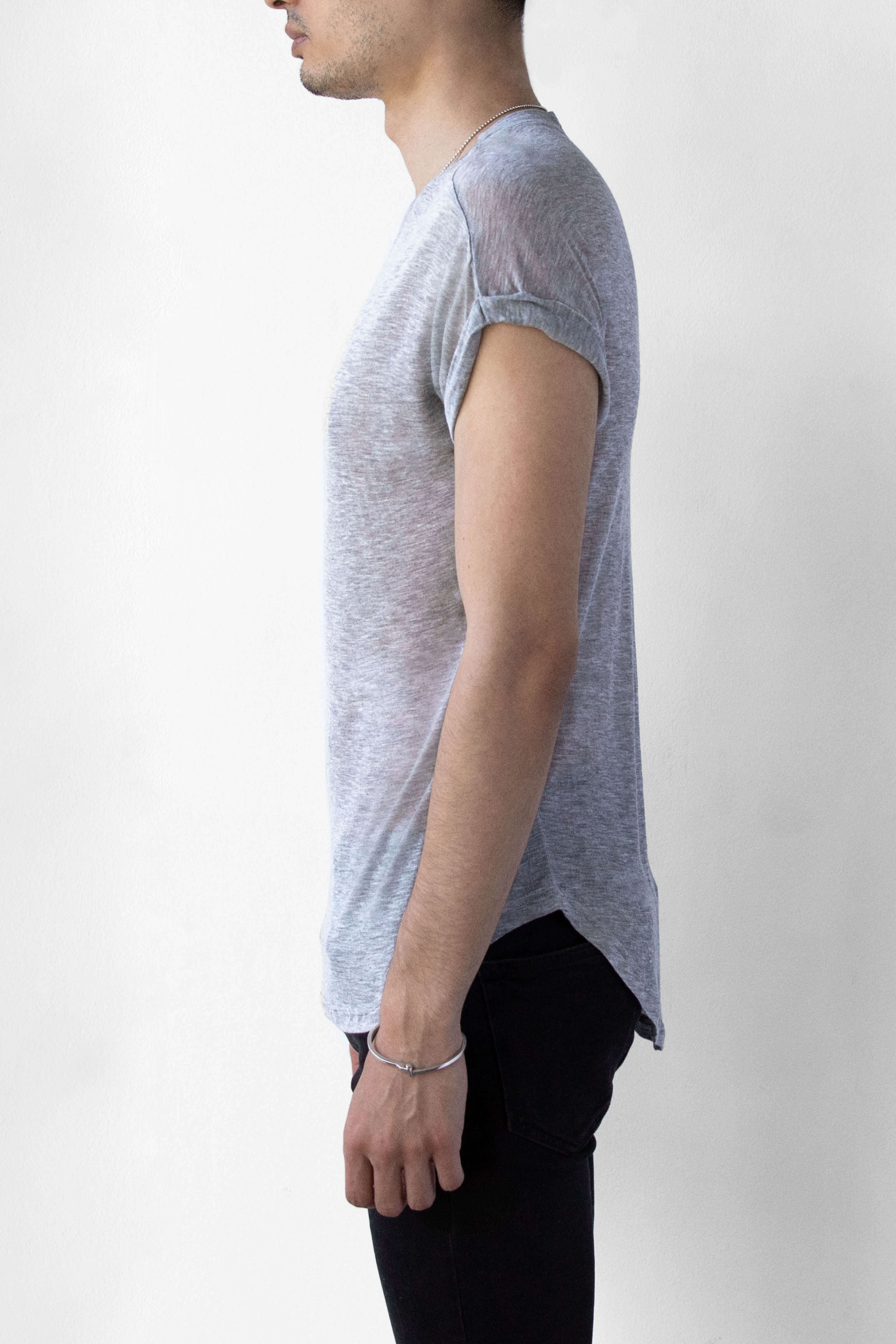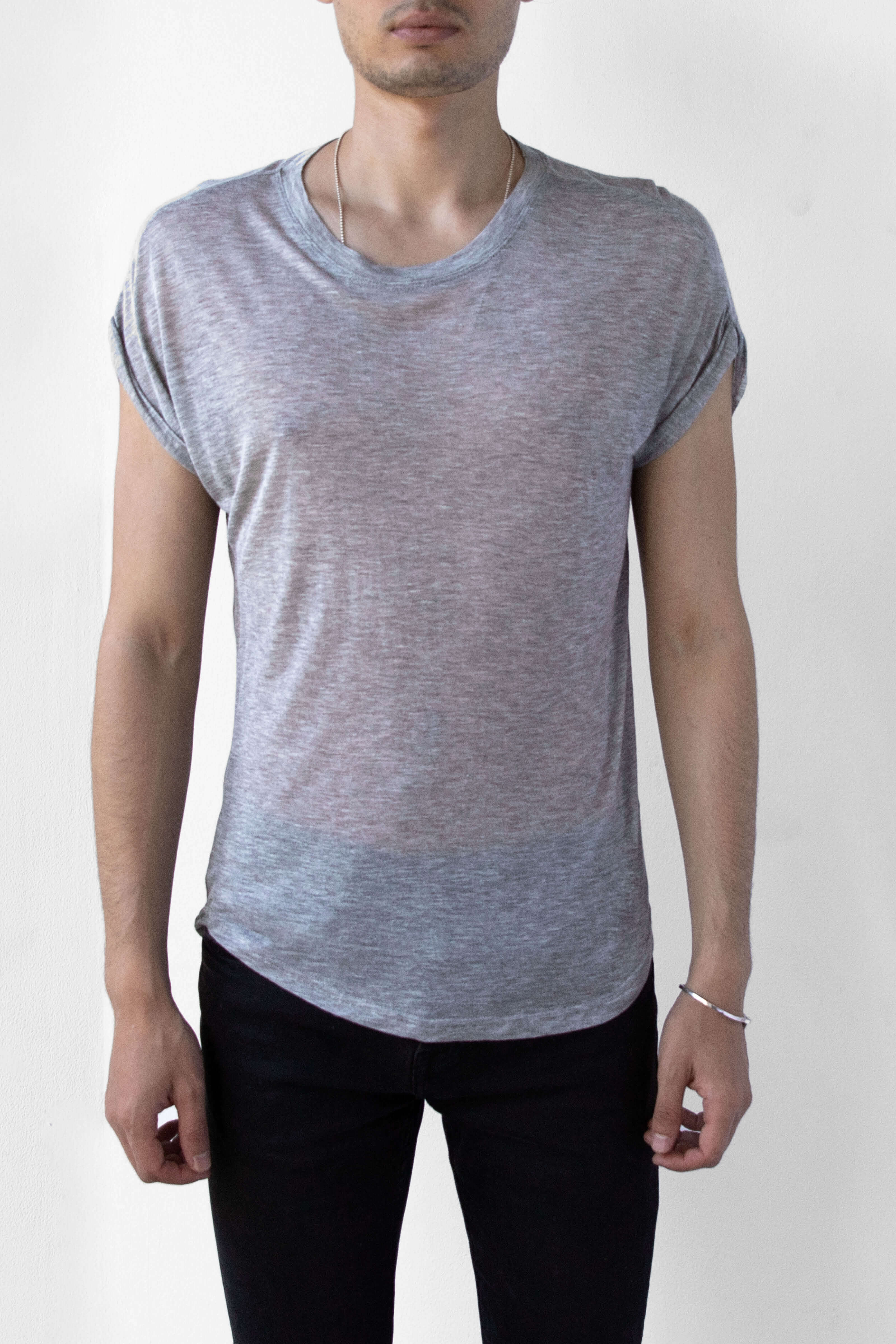 This classic BEAU Summer t shirt has a curved hem and raw edge cuffed sleeves. It drapes effortlessly on the body to keep you cool.