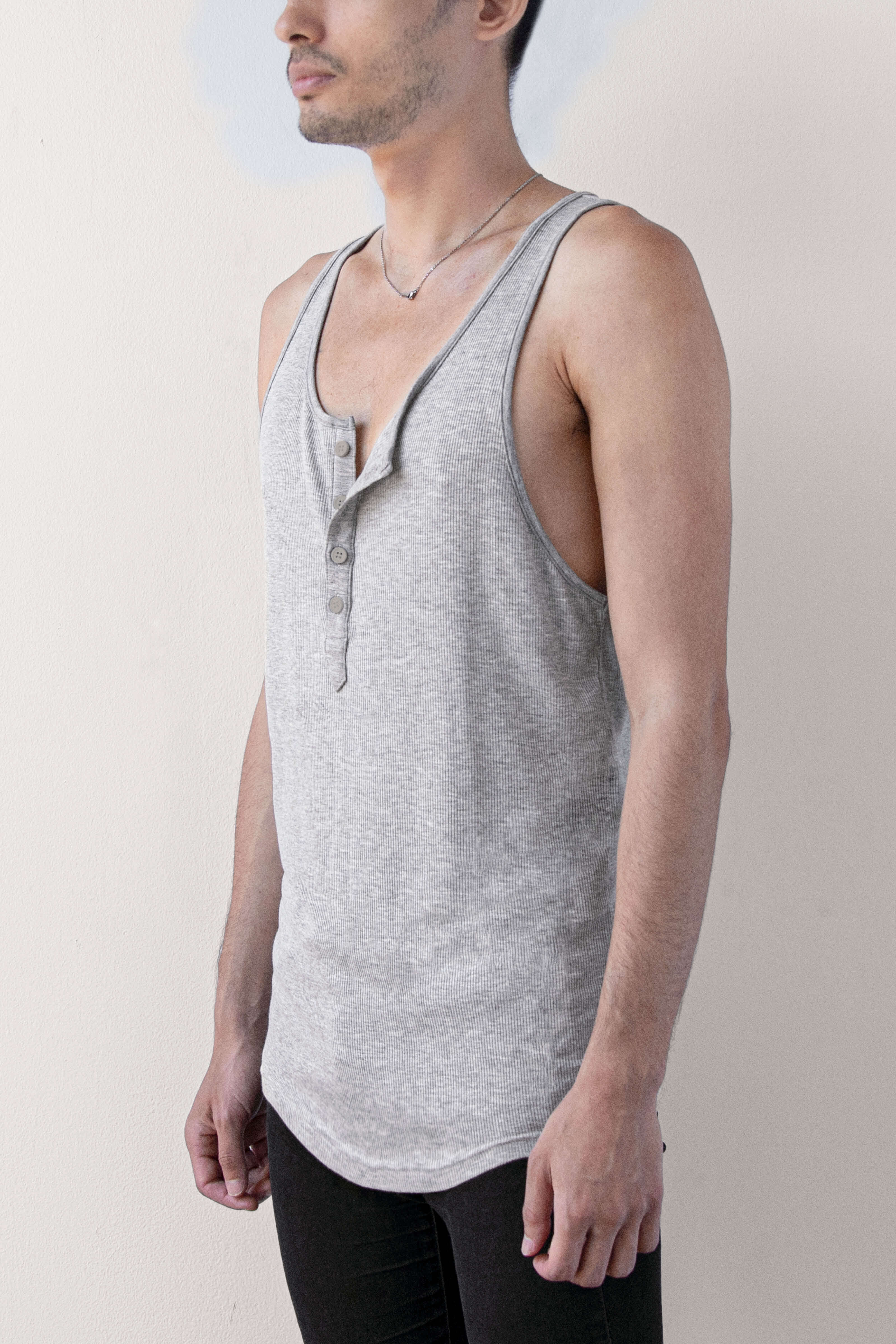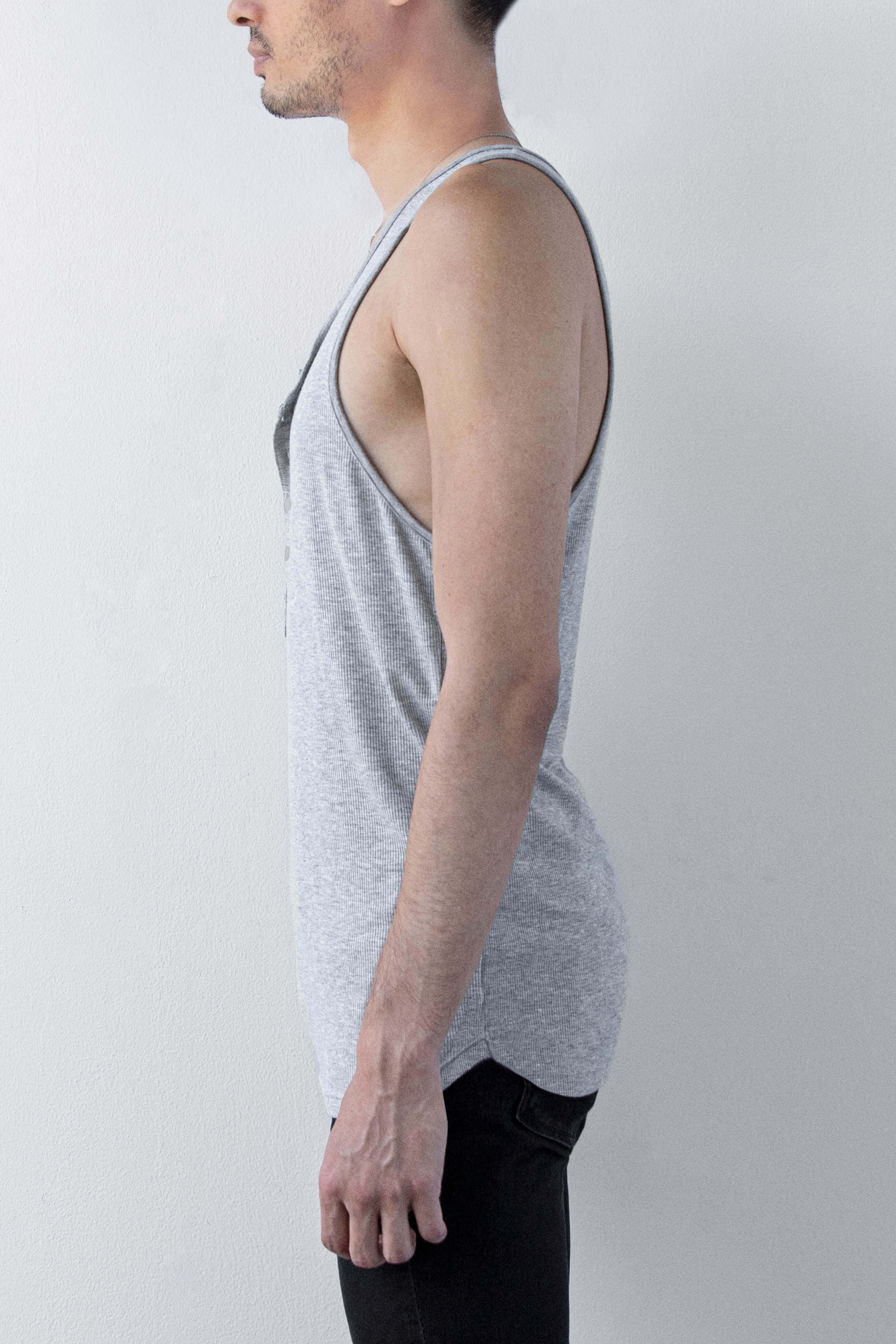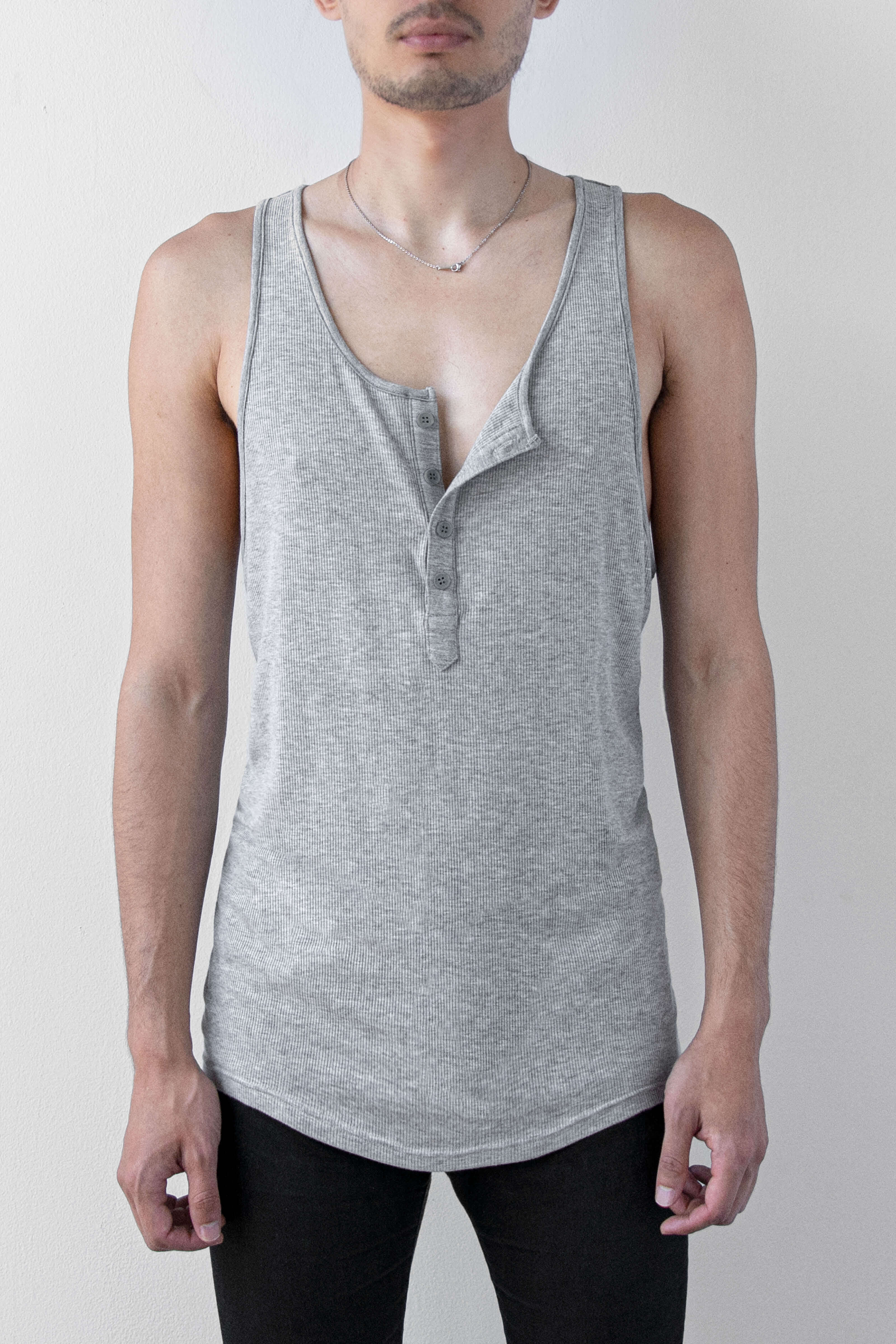 This button up henley is made of ribbed bamboo rayon and has a subtle curved hem. It's super soft and is medium light weight. A great layering piece that can be worn tucked in or out.