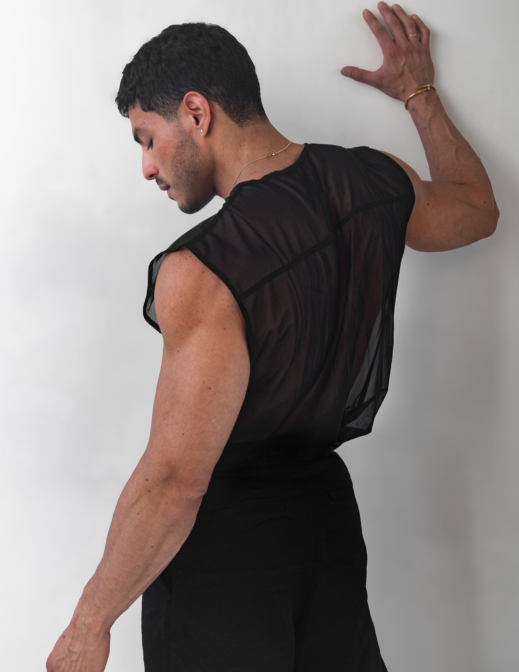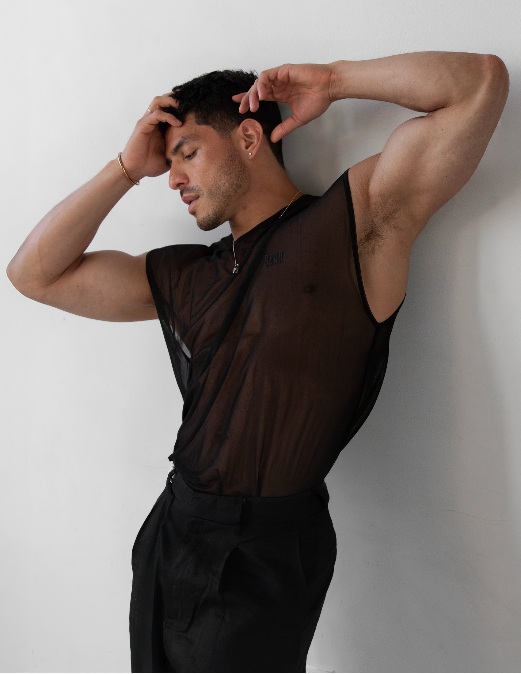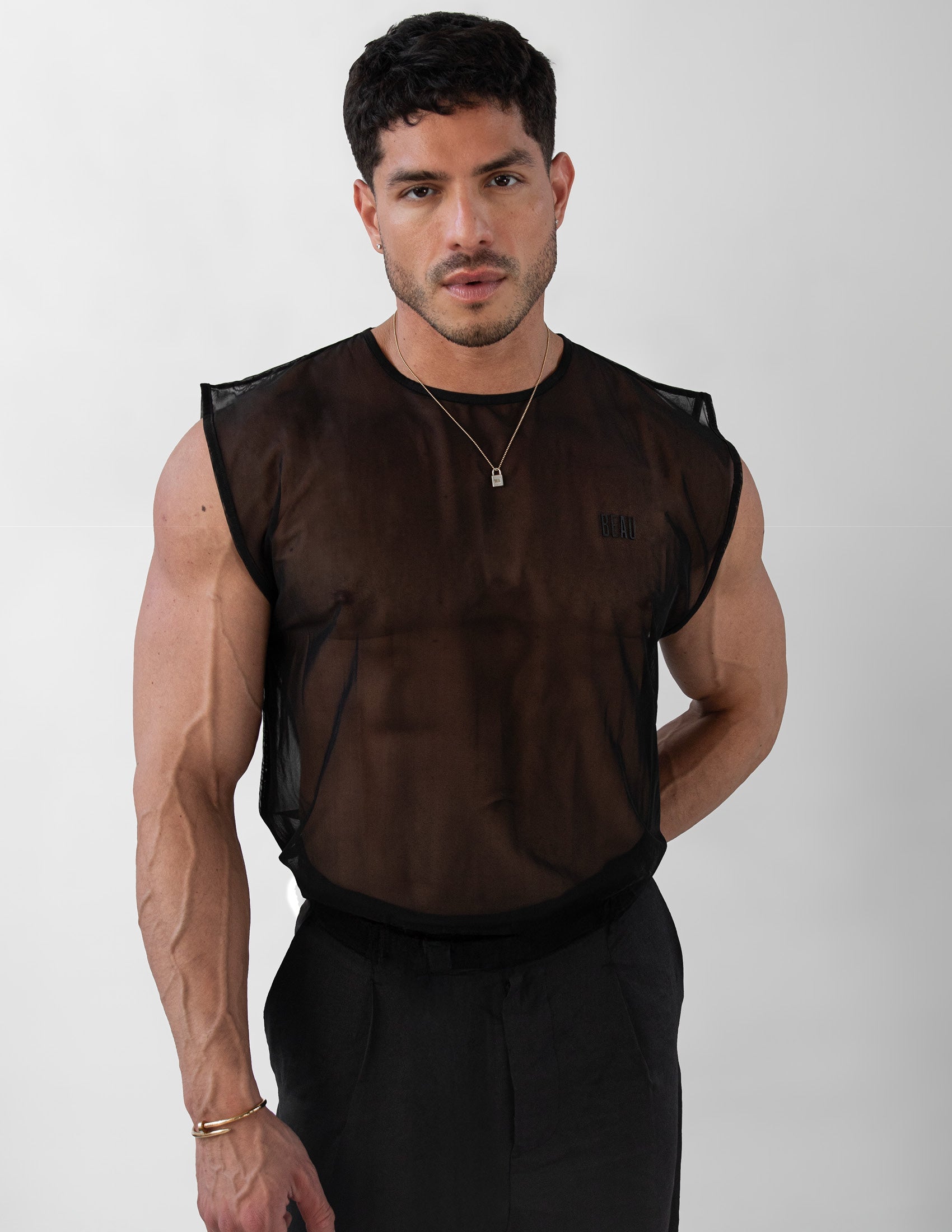 Get ready to ghost them in this super sheer mesh tank! With an easy flowy fit and made of recycled material and stretch, it's not only sleek but sustainable. Perfect for layering. Can't forget the Beau over your heart.