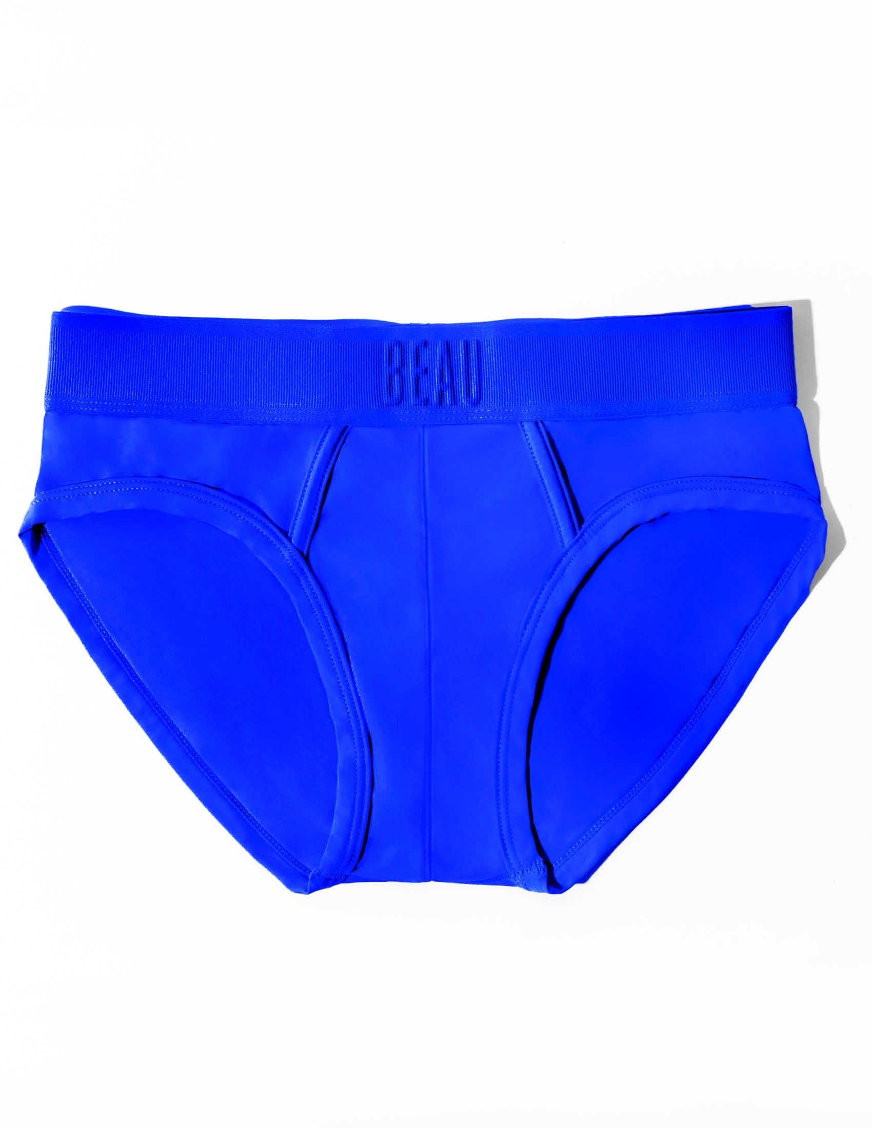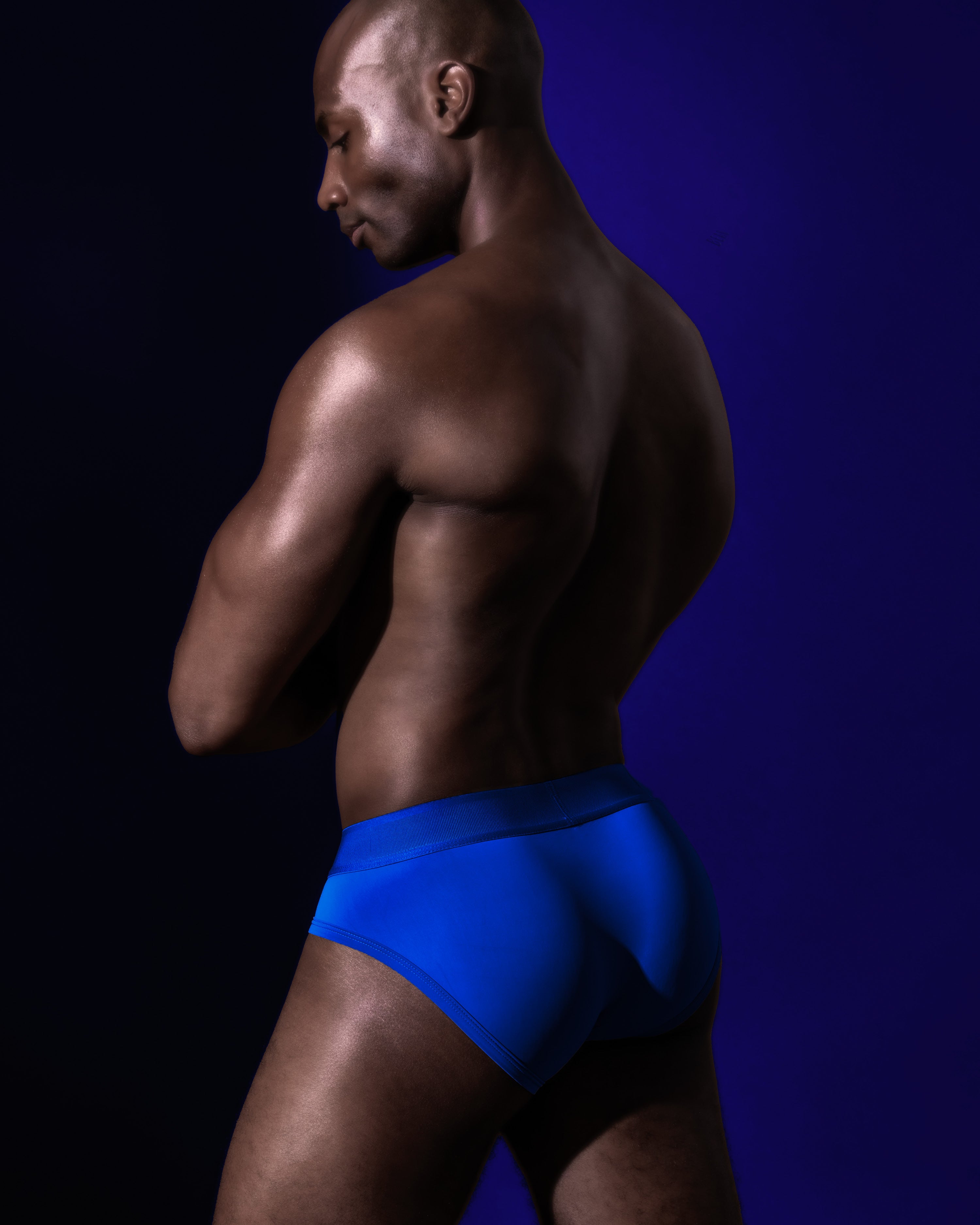 Now in our new Azul color. This rich ultramarine brief has an airy matte silk touch with a comfortably enhanced pouch and smooth profile. Made from recycled nylon that's breathable, moisture-wicking and naturally anti-bacterial. No-tag construction, signature embossed waistband made with pro-stretch to fit even more body.