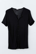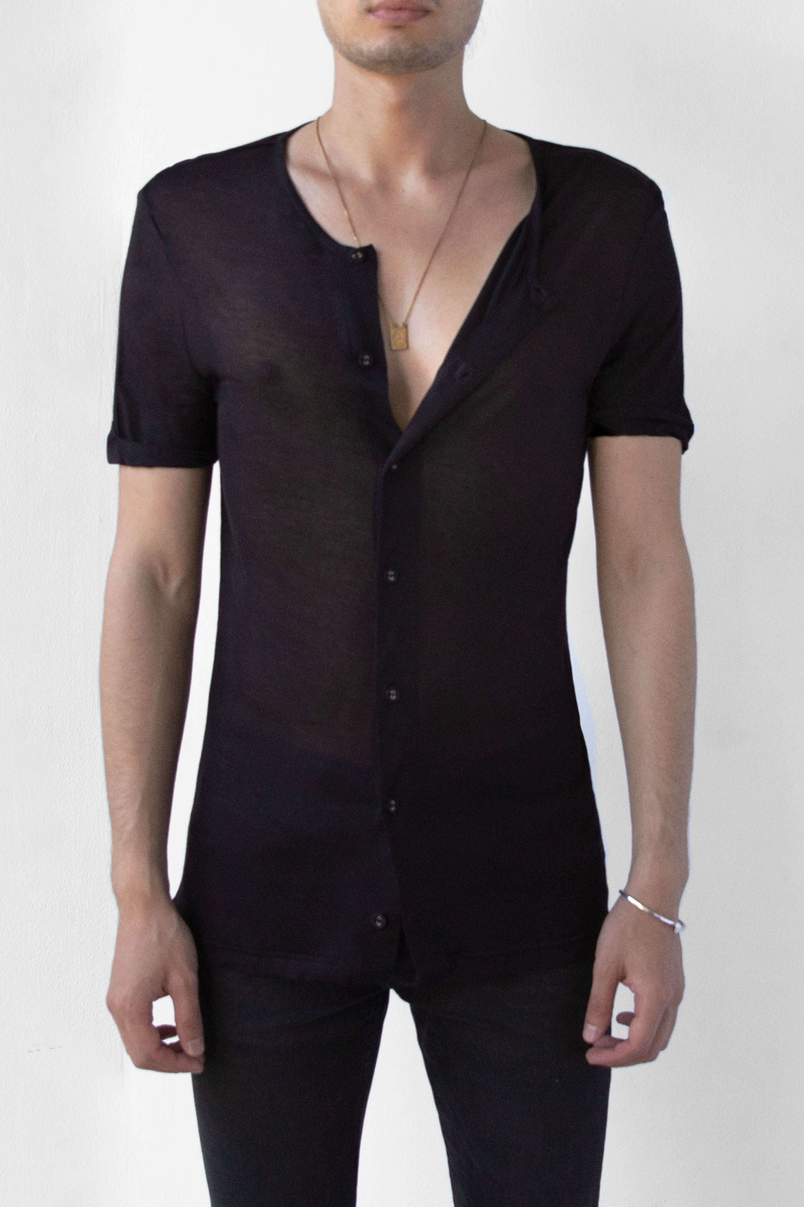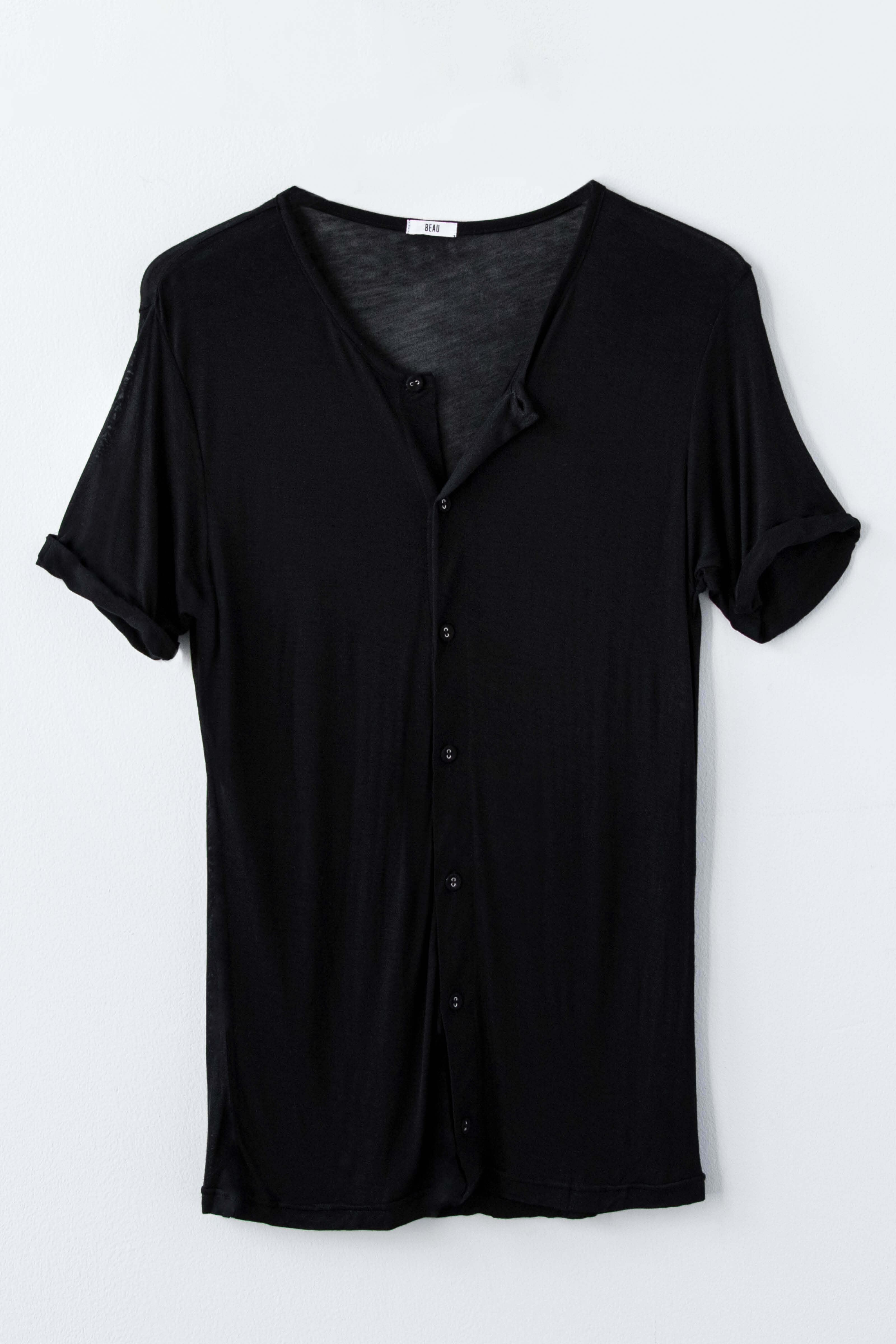 This breezy twist on a classic t-shirt offers a full button up front to layer or let your body breathe in the summer air. This fits more oversized than our essential shirts.