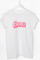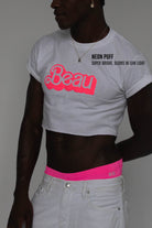 C'mon Beau, lets go party. Made with a thick neon pink puff print. You'll be sure to glow under a black light. Classic cut T-shirt, made with premium soft cotton.