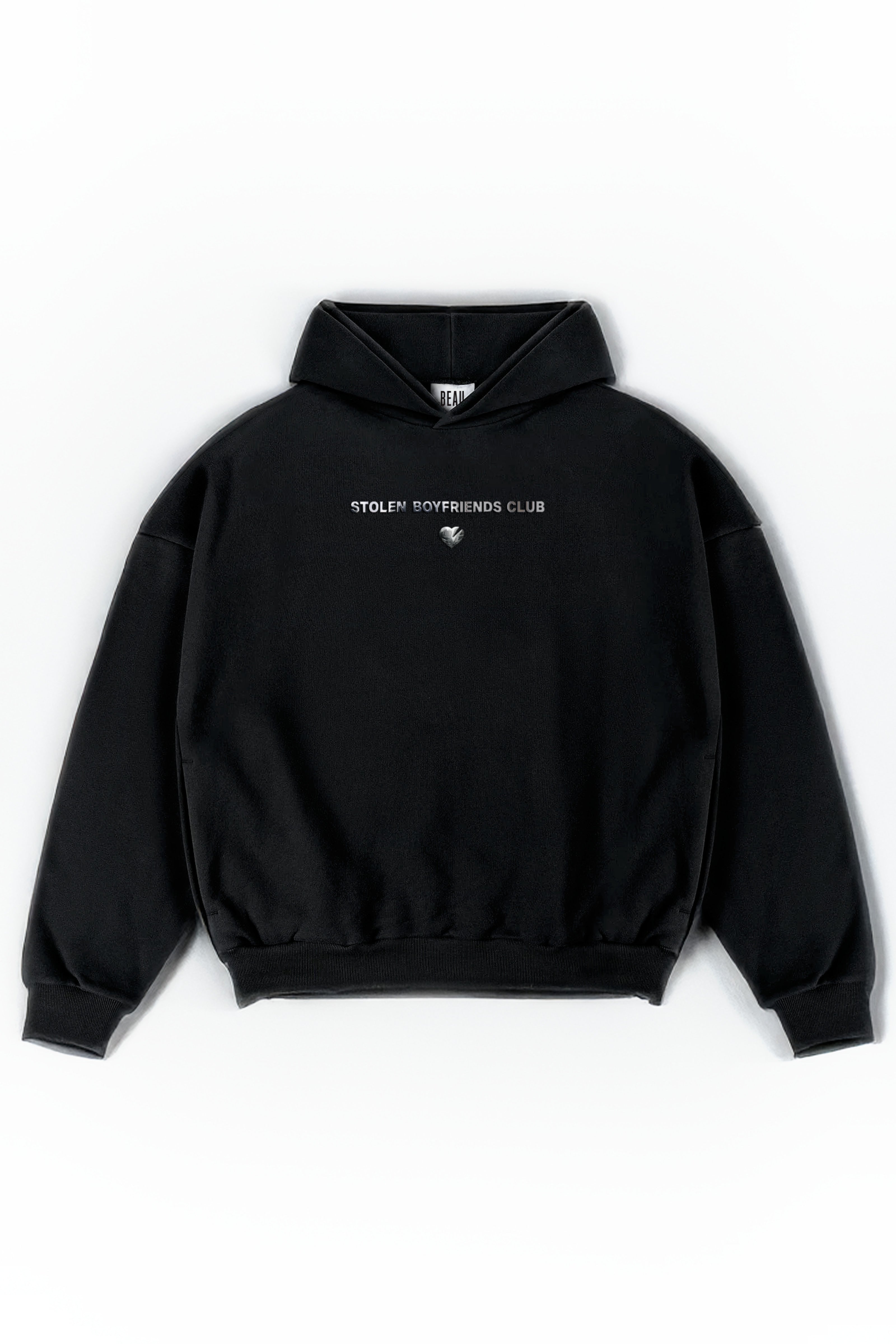 Limited edition, just like you. Our Stolen BF Club Hoodie is made of a heavy weight recycled cotton. Designed with hidden slit pockets to keep it sleek, and with an oversized cropped fit and drop shoulder design, it’s the hoodie that’s always ready steal hearts. Flexible chrome silver 3D logo on chest.